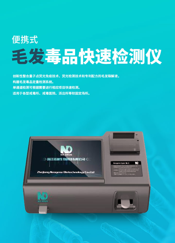 諾迦生物以表面等離子共振(SPR)、量子點、微流控生物芯片、基因工程抗體為核心技術,成功研制多項先進的毒品檢測系統。目前,公司自主研發的毛發毒品檢測技術和產品處于國內領先地位:(1)擁有手持式、便攜式、多聯卡毛發毒品檢測設備,操作簡單、攜帶方便、取樣便捷,能適應各種檢測環境;(2)可檢測多種傳統毒品和新型毒品;(3)試劑盒等耗材可常溫保存;(4)設備性能優越:檢測速度快(5分鐘)、檢測精度高(符合公安部標準)、熱穩定性強(可耐45℃高溫)。