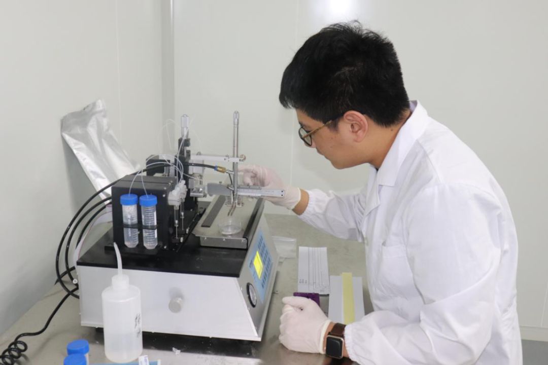 ▲技術(shù)人員調(diào)節(jié)溶液PH值